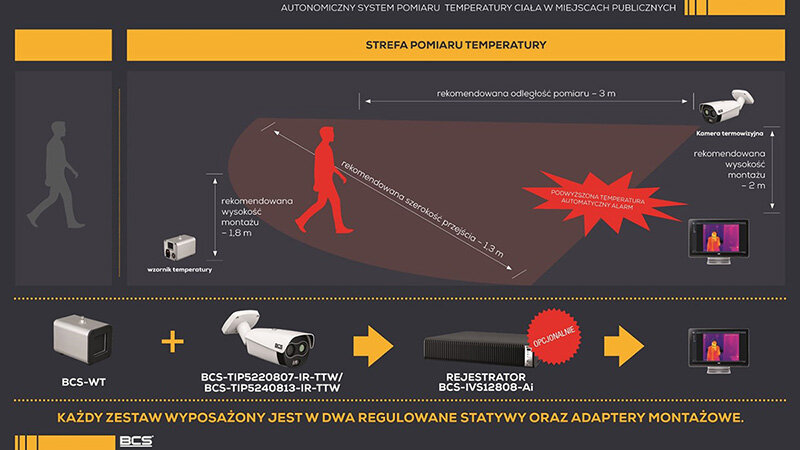 - The system continuously, automatically and without contact measures the temperature of the bodies of people within its range.