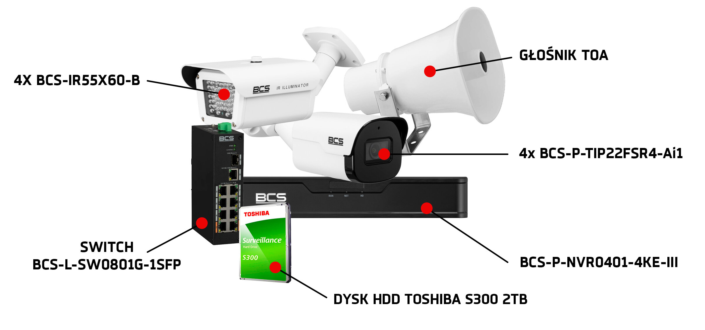 Image analytics allows the camera to identify real movement, be it of a person or a larger animal. This event is then verified by the person in charge of monitoring, the appropriate voice messages are sent, which are played through a TOA speaker mounted on the mast, and in the event that the intruder is further determined to remain on the protected premises, a patrol of the relevant services is sent.