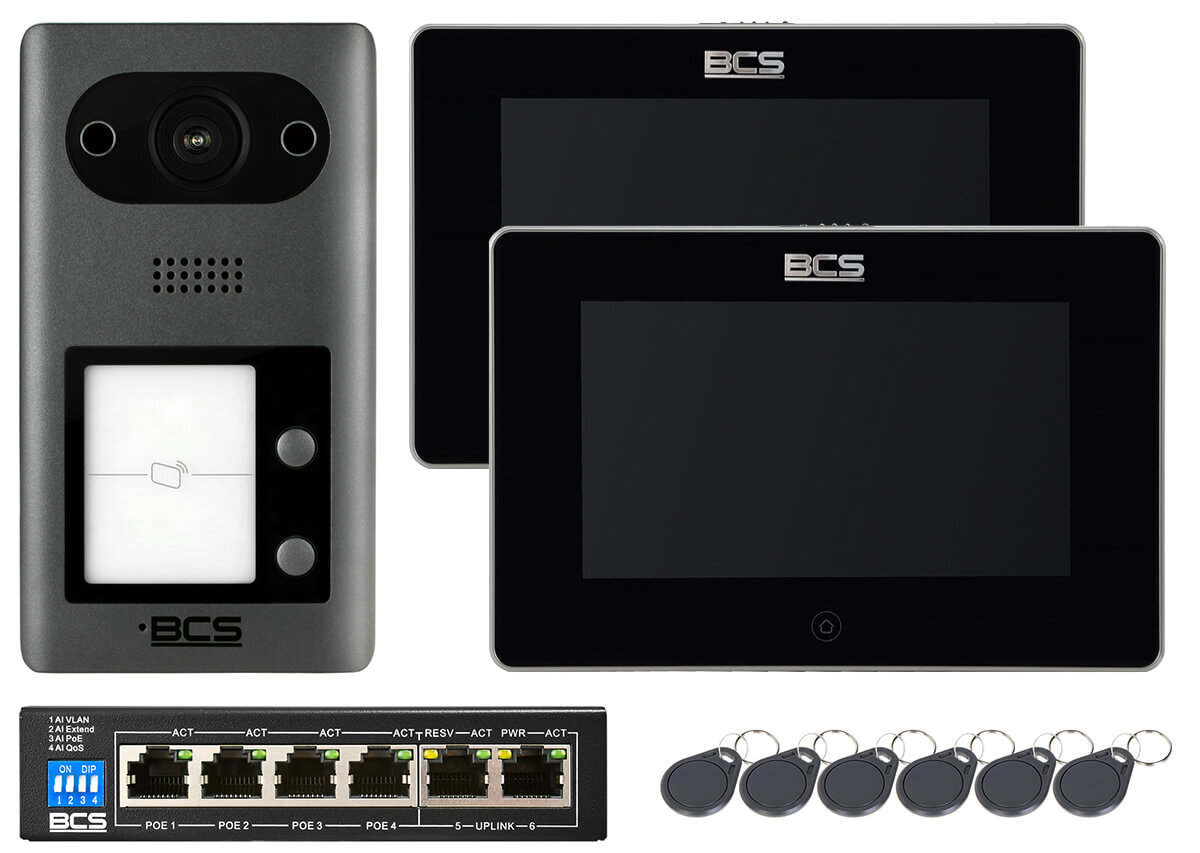 2-family IP Video Intercom Set BCS-PAN2401G-S 2x 7" Monitor BCS-MON7300B-S + 6 keychains