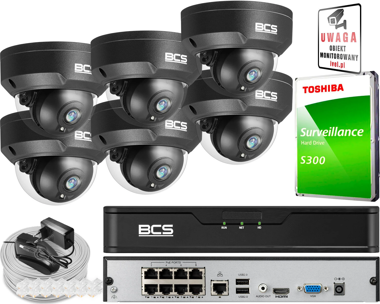 Surveillance Kit 6x BCS-P-DIP25FSR3-Ai2-G 5Mpx IK10 IR 30m, Starlight, Audio, Vandal-Resistant