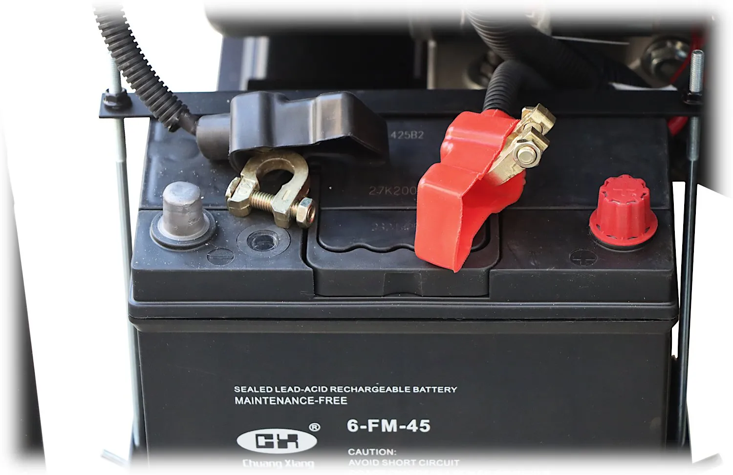 - Rozruch: elektryczny (rozrusznik); akumulator 12 V / 45 Ah w zestawie
