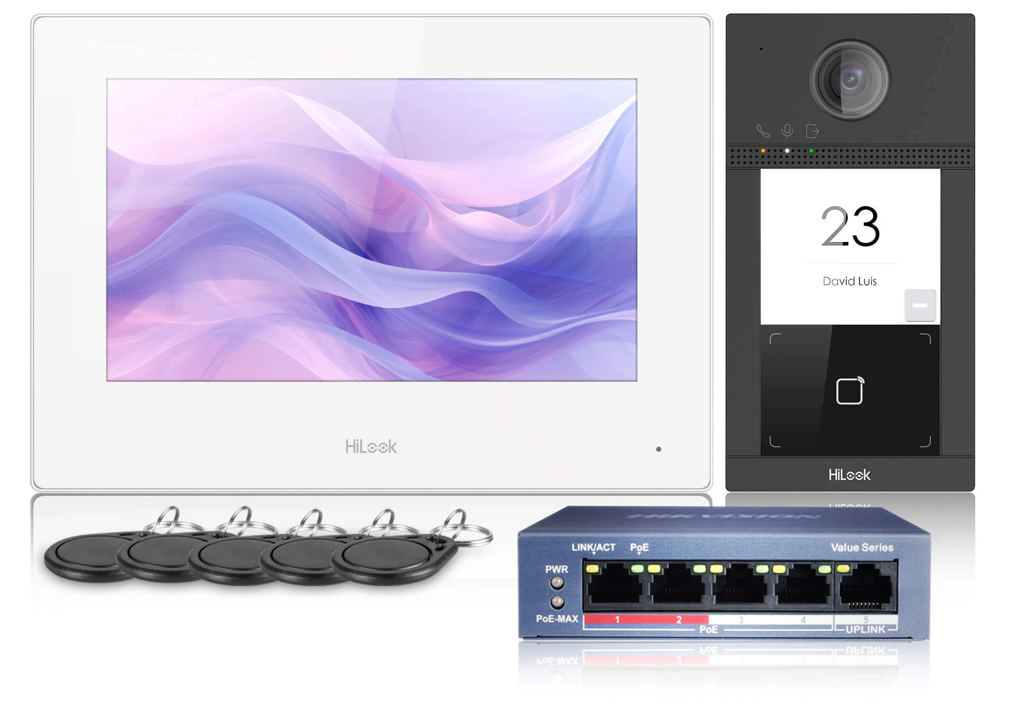 One cable is all you need to run the gateway and monitor, and they support PoE power, which makes installing the kit much easier. In addition, you can connect Hikvision network cameras to the PoE Switch included in the kit and get a preview from them on the monitor or standard on the Hik-Connect mobile app.