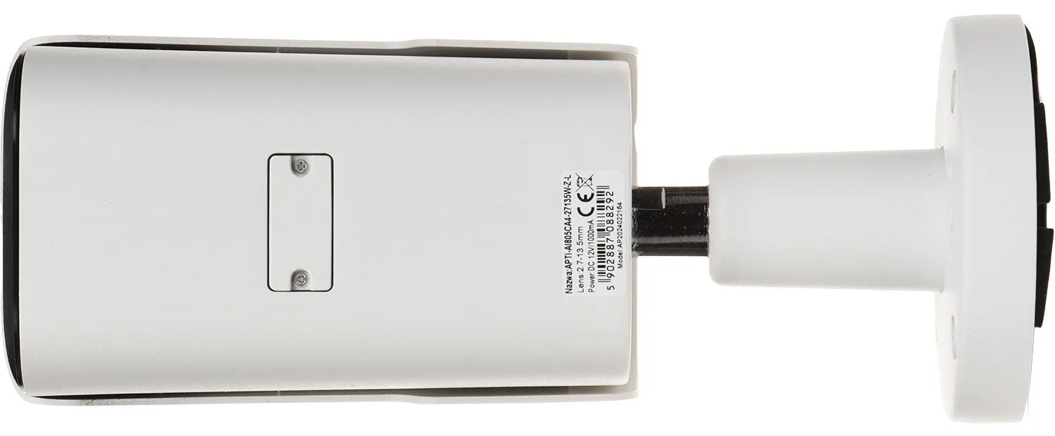 The camera's bracket is adjustable in all three planes, and the power cables are hidden inside itThe range of the illuminator quoted by the manufacturer depends on the environmental conditions (air transparency, environment, wall color, so called scene reflectance)