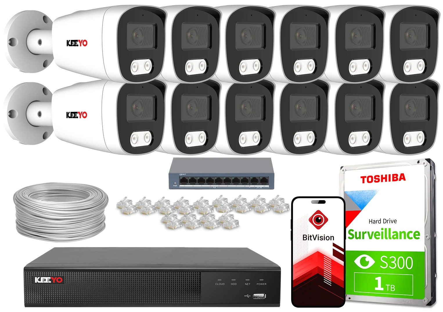 IP Monitoring Kit KEEYO 12x LV-V-IP8M25TF-DL 8Mpx, dual lighting