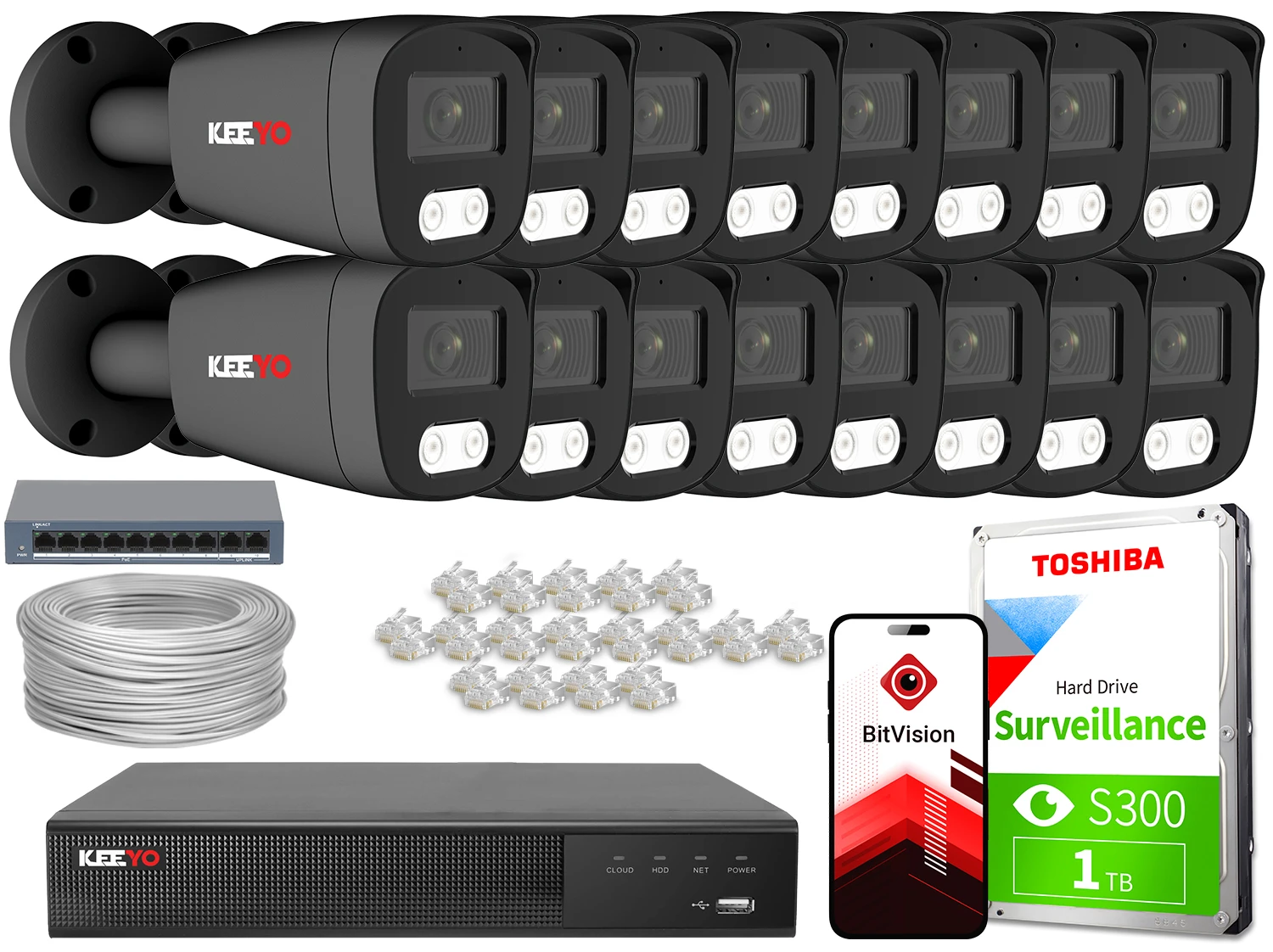 IP Monitoring Kit KEEYO 16x LV-V-IP8M25TF-G-II 8Mpx IR 25m