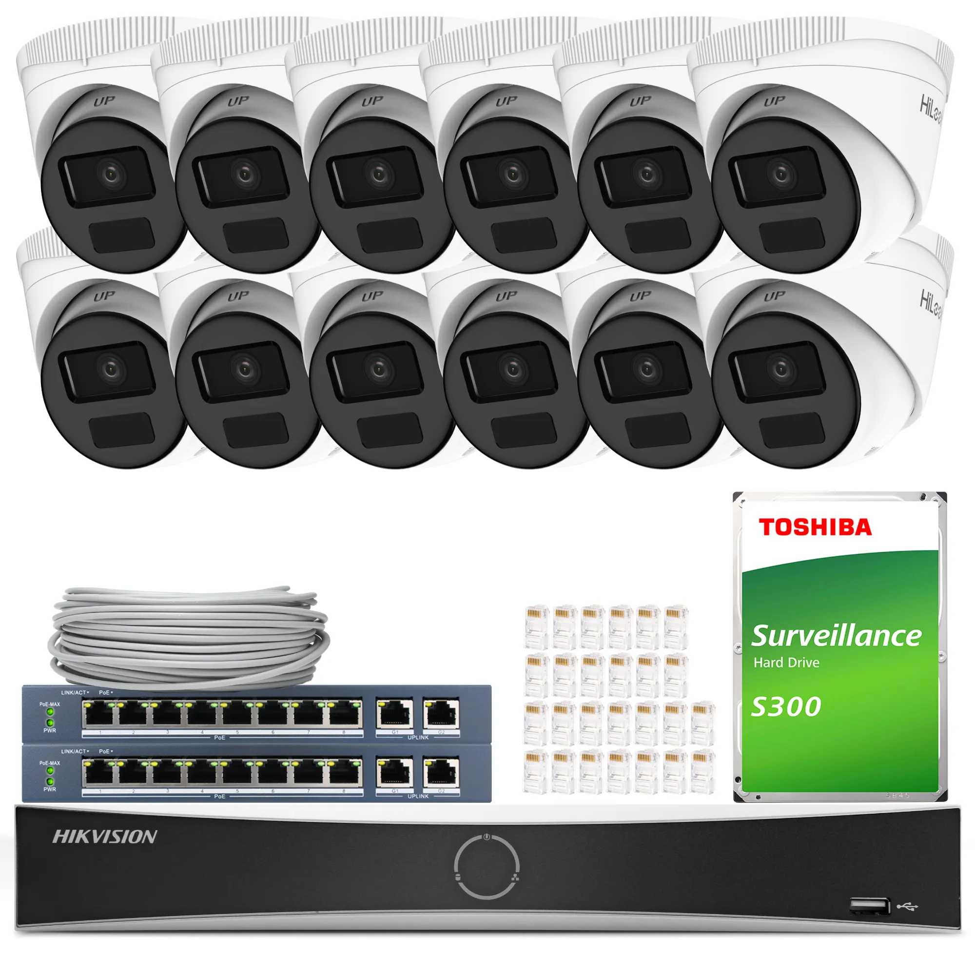 12x IPCAM-T4-P Full HD Monitoring Kit, PoE, IR 20m, H.265+ HiLook Hikvision