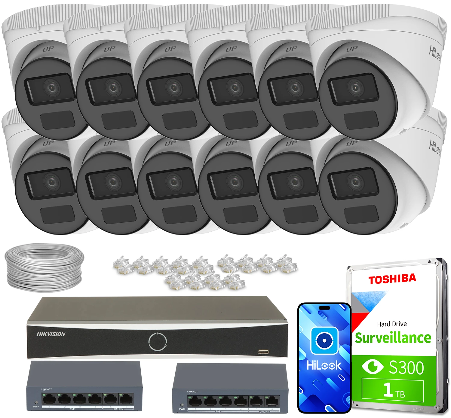 12x IPCAM-T2-P Full HD Monitoring Kit, PoE, IR 20m, HiLook Hikvision