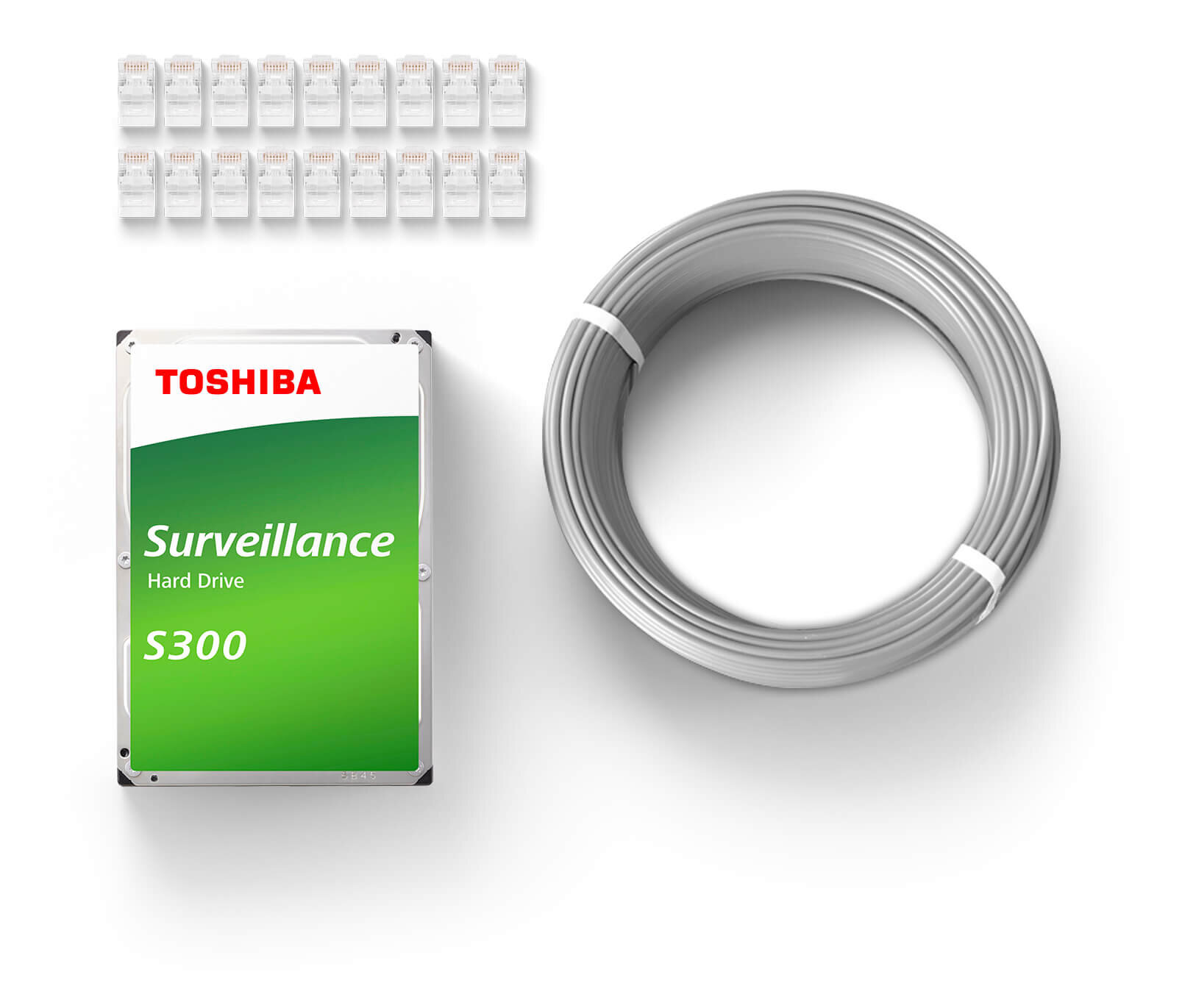 - 1x Toshiba S300 1TB hard drive from Surveillance series, dedicated to CCTV solutions