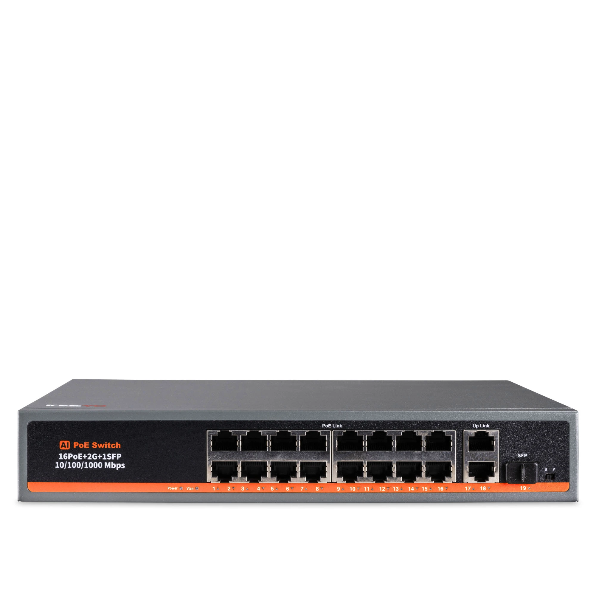 - Application: The LV-V-SP162 is an 18-port PoE switch designed to power IP cameras operating under the IEEE 802.3af/at standard. The switch on ports 1 to 16 has the function of automatic detection of PoE-powered devices.