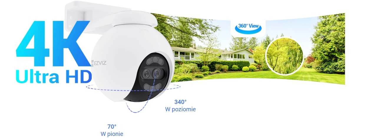 Experience a state-of-the-art outdoor camera that intelligently combines the power of two lenses to truly understand the lights and shadows of your surroundings and capture your most important moments. Featuring EZVIZ's proprietary ColorFULL technology and ultra-clear 4K resolution, the H80x Dual doesn't need to turn on any spotlight to bring back realistic detail in a dark space. The flexible rotating and tilting camera tracks activity by design, patrols key areas and automatically triggers alerts on the spot for peace of mind.