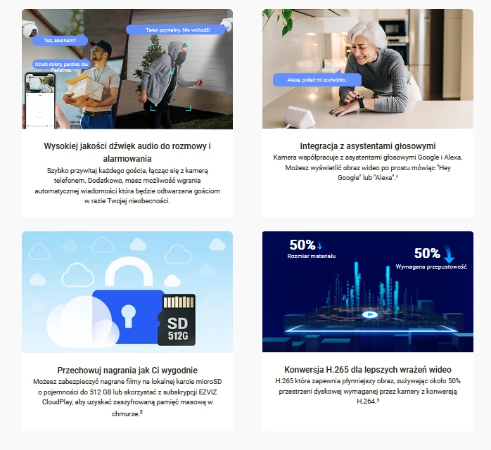 - Support for microSD card (up to 512 GB) and EZVIZ CloudPlay cloud storage