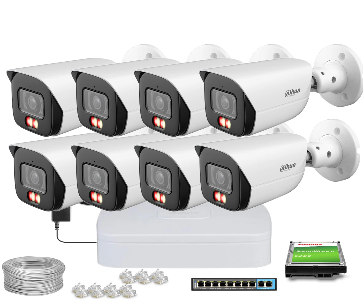 Zestaw do monitoringu IP Dahua 8x IPC-HFW3849E-AS-IL-0280B 6Mpx, Smart Dual Light 30m Full-Color + AcuPick