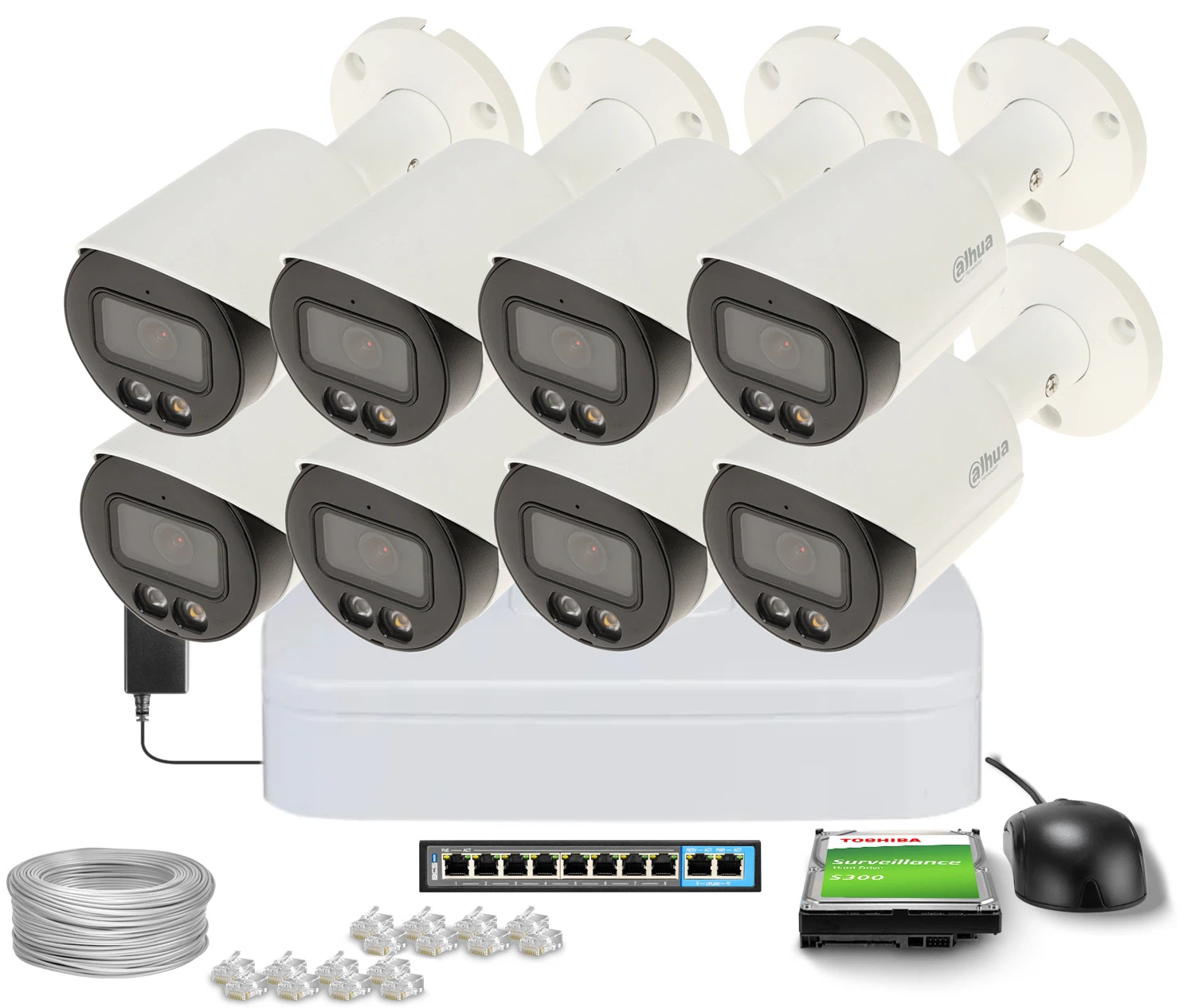 Zestaw do monitoringu IP Dahua 8x IPC-HFW2449S-S-IL-0280B, 4Mpx, 2.8mm, Smart DualLight
